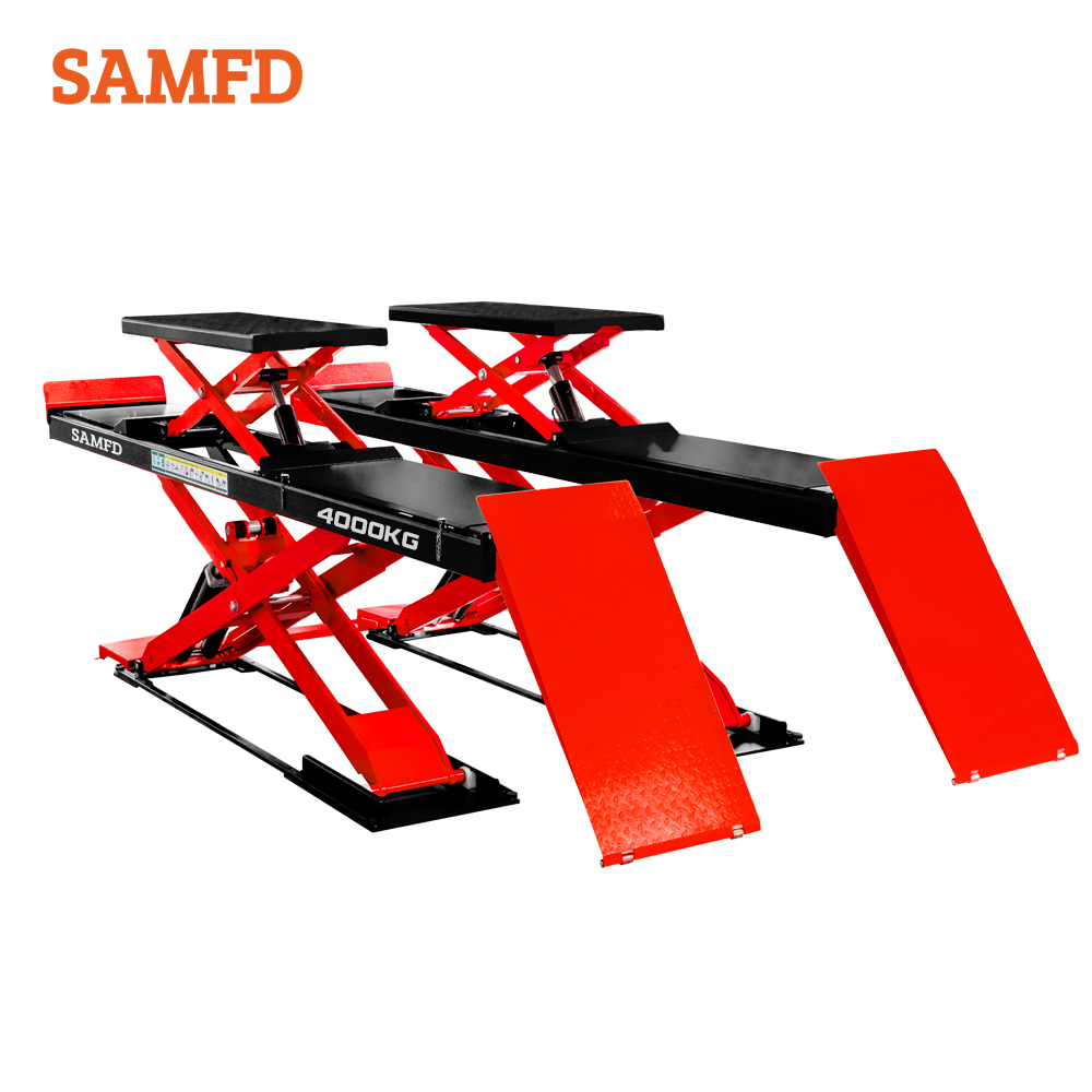 2. Double tandem synchronous balanced cylinders and four cylinders driving ensures synchronous lifting of platforms,the 4.0T lifting capacity can match various vehicles repair requirement.